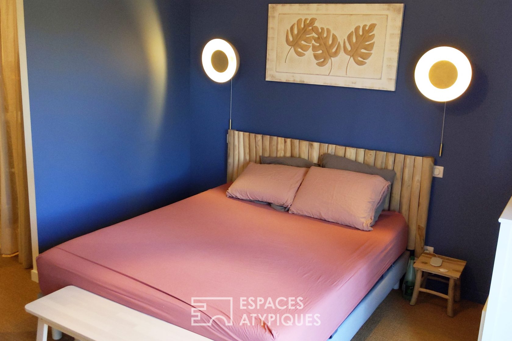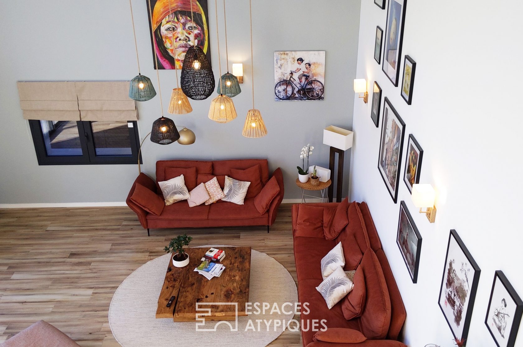 We chose it for the atypical mix between authenticity (of the stone barn outside) and modernity (inside). The large glass roof in the living room and the high ceilings allow this house to have a beautiful luminosity which will be perfect for your shots.
